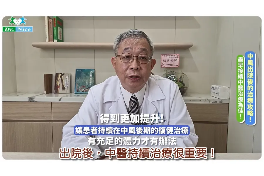 Dr.Nice蔡德豐副院長告訴您,中風出院後,黃金恢復期的中醫介入治療時間,是您重拾往日健康的機會。 -